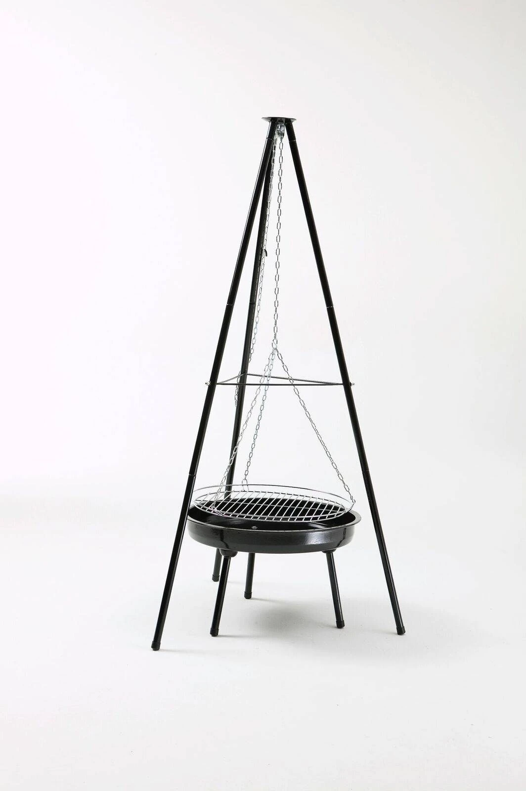 Made from tough, durable powder coated steel 50cm diameter chrome plated steel cooking grill Height adjustable chain allows you to raise or lower the grill to give more control when cooking