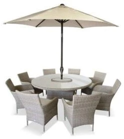 LG Outdoor Monaco Sand 8 Seat Dining Set With Weave Lazy Susan And Parasol