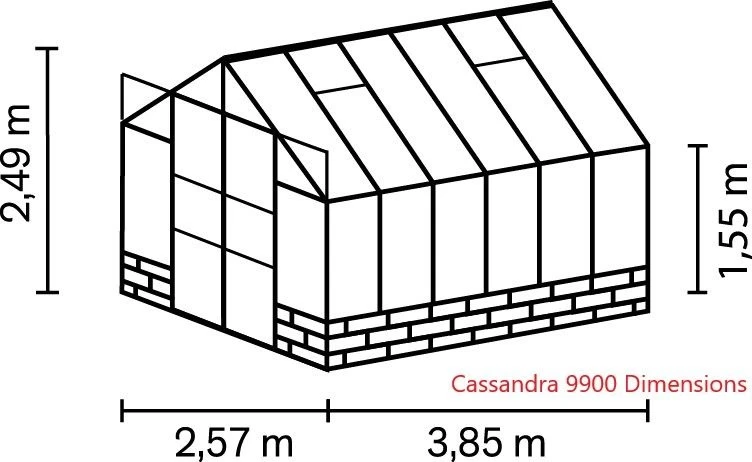 Designed to sit on a single skin dwarf wall, the required height is 50cm, the dwarf wall increases the insulation of the greenhouse, and although the wall is not included with the greenhouse frame it enables the customer to choose the material which best suits their taste.